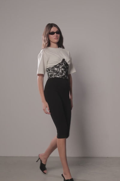 • Elegancki design: Połączenie gorsetu i diamentów tworzy ponadczasowy, szykowny wygląd na klasycznej białej tkaninie.