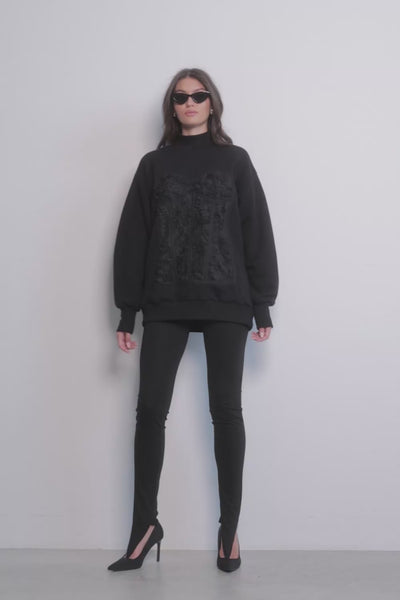 Odkryj wyrafinowaną elegancję z czarnym golfem „Kora” z gorsetowym przeszyciem od Atelier Hamza.